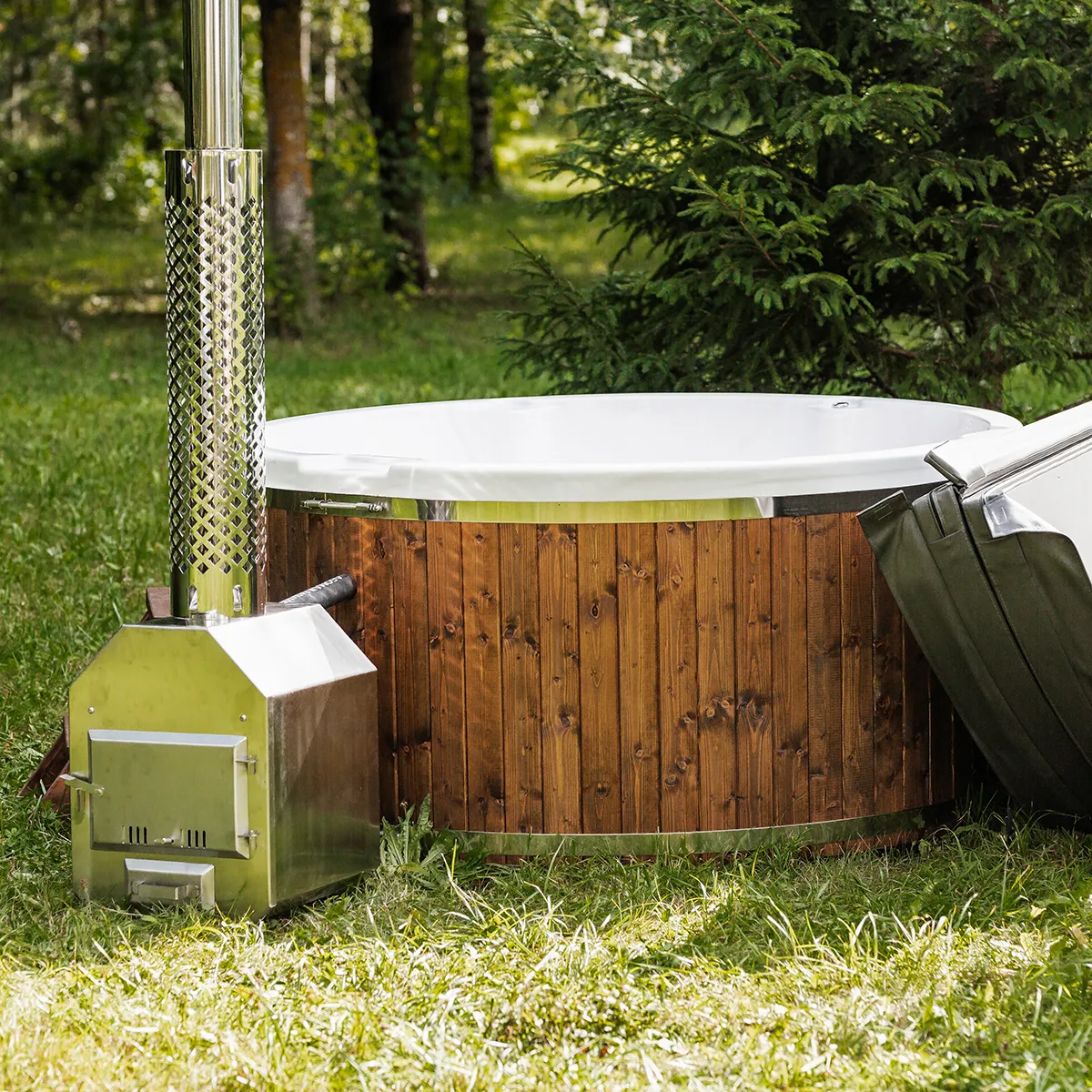 • External Heater: The wood-burning external heater ensures efficient and even heating while keeping the interior of the hot tub spacious.